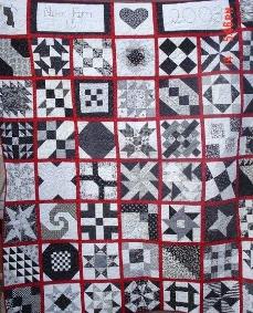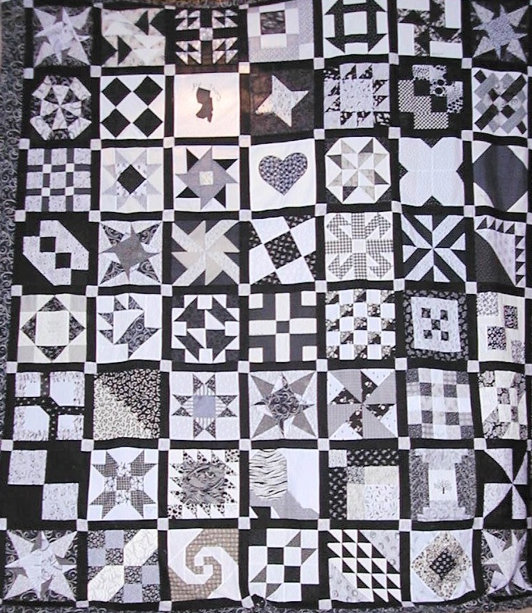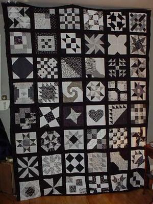 | Traditional 50 State Quilts Our quilting group swapped 12 inch 50 State Quilt Blocks in Black and White on White Color Theme Hostesses Vickie Ritthaler Completed January 2003 Click on quilts for a larger view |