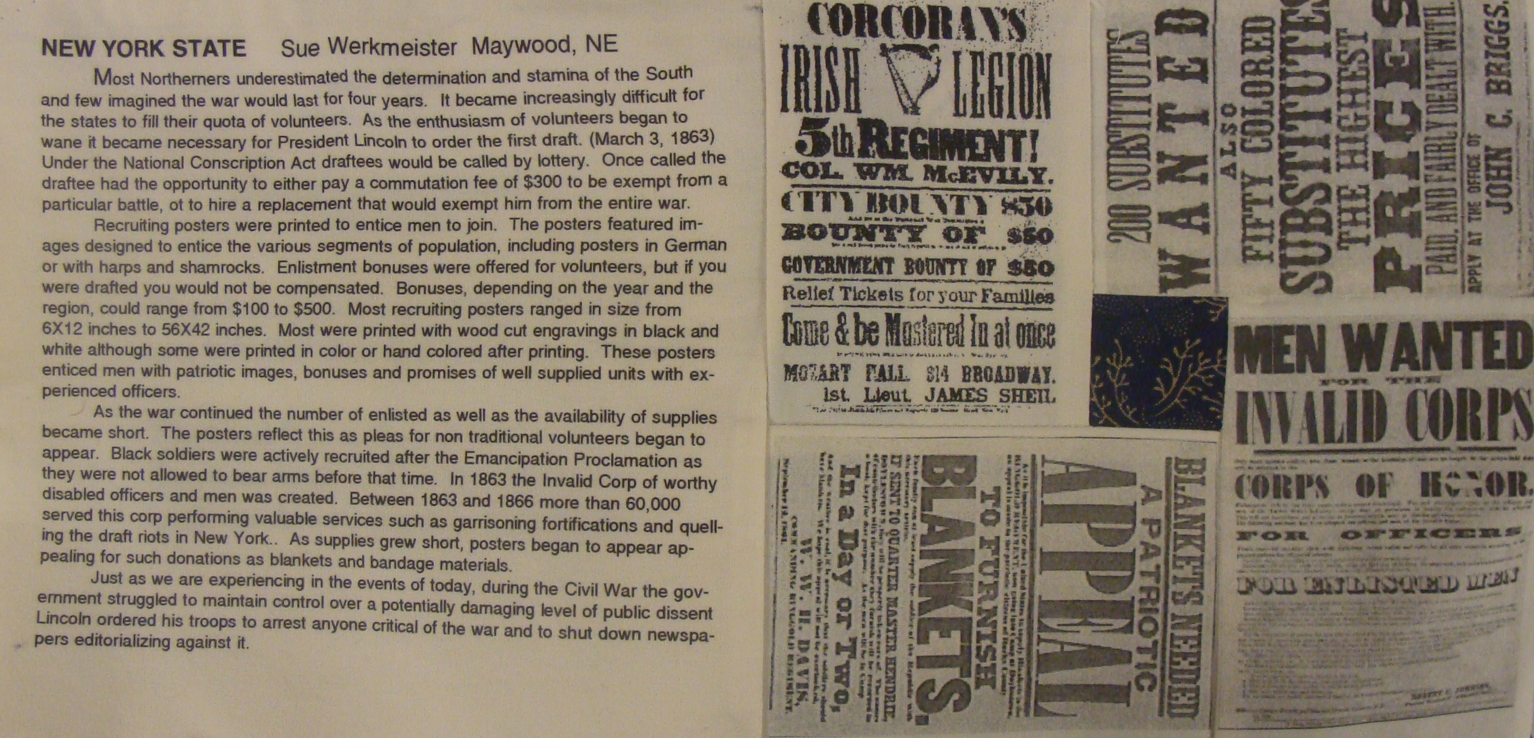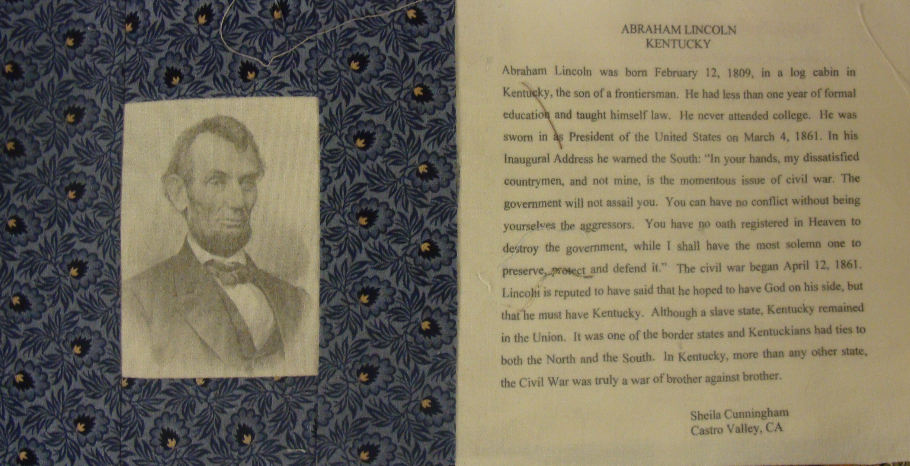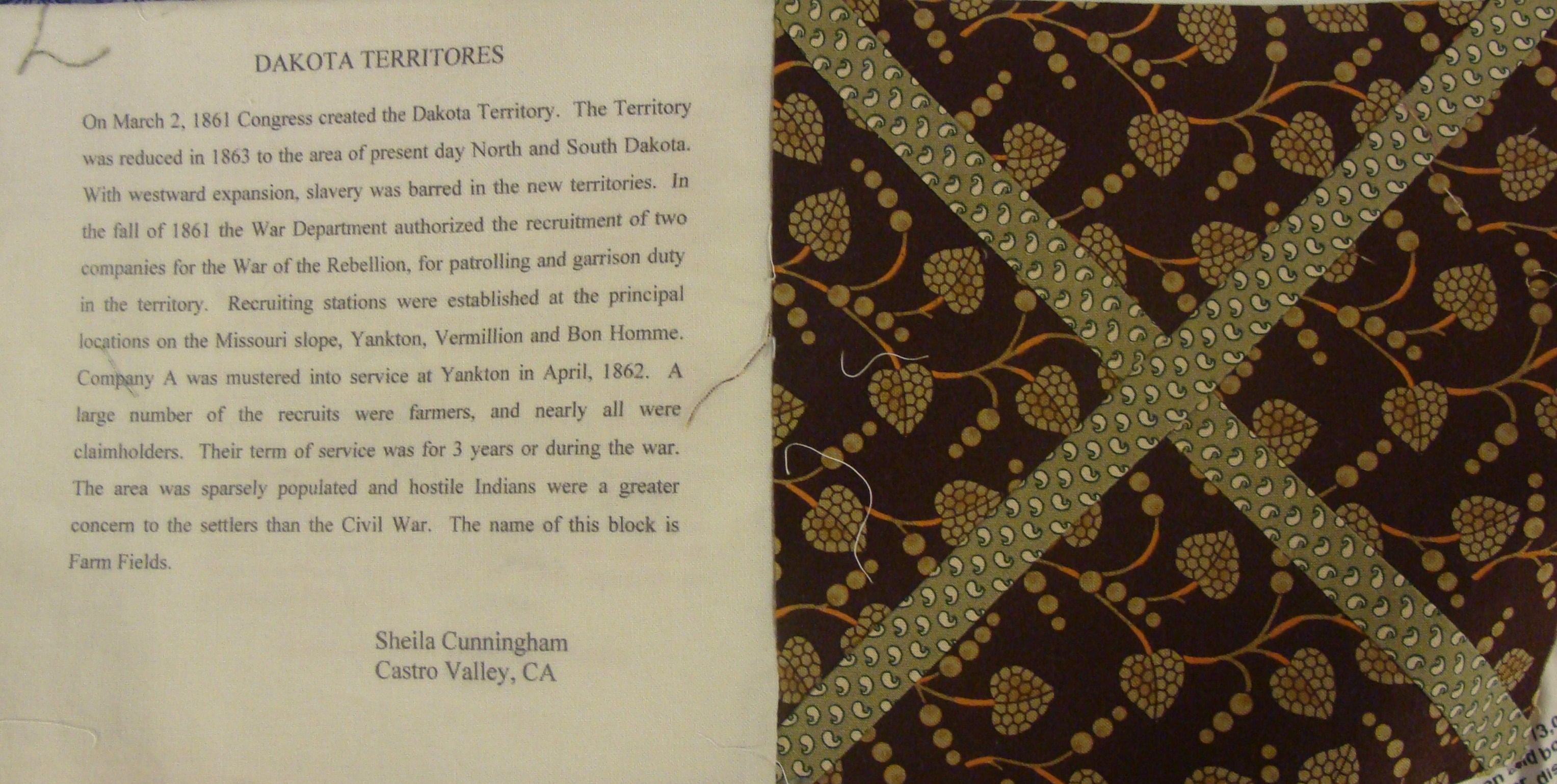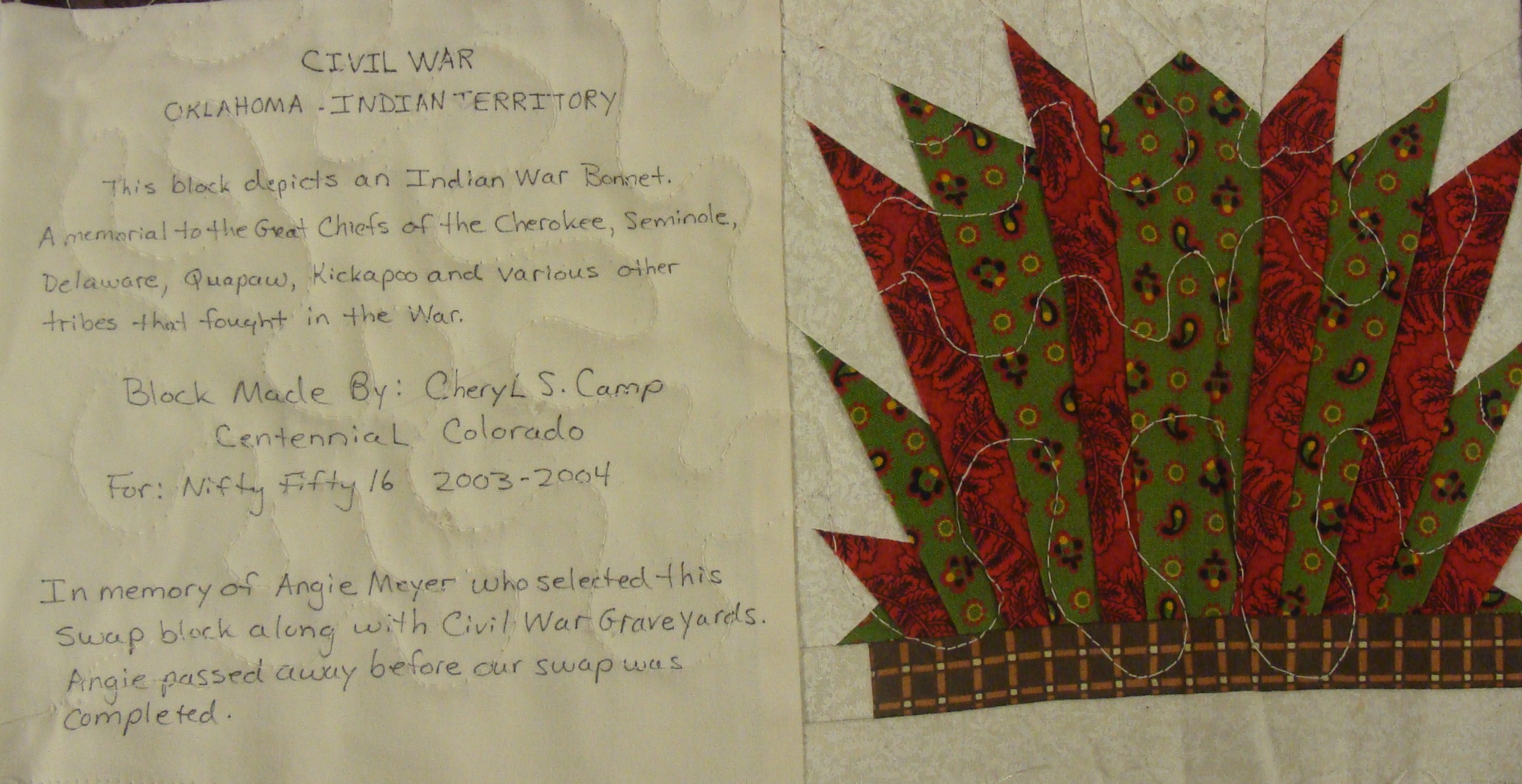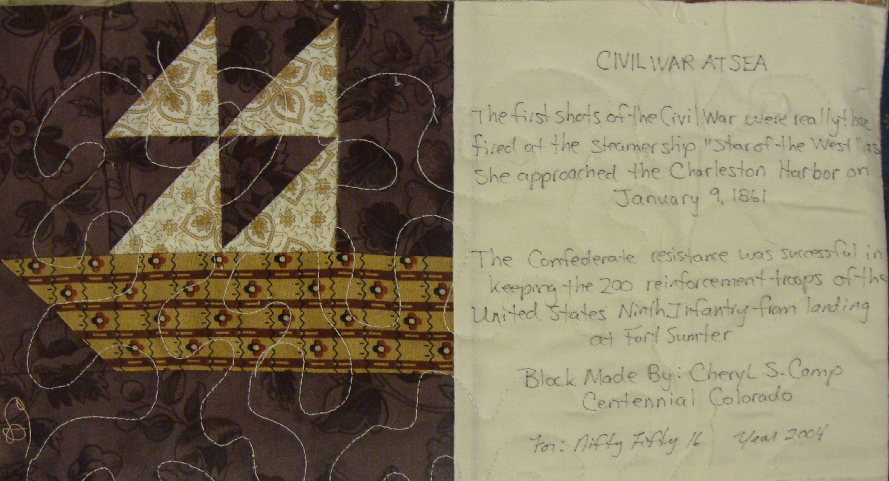 Civil War Quilt Block Swap Our quilting group swapped 6 inch quilt blocks that were uniquely designed to represent a state or a specific category during the time period of the Civil War. Each quilter made a signature quilt square to go along with their designed quilt block. The signature square tells the history behind their state or category from the Civil War. Below are photos of each quilt block and their corresponding signature square. Clicking on each of the quilt blocks will produce a larger image so you can read the signature squares. We had 64 categories in this swap which include over thirty of the States and Territories of that time period. Our group also made a quilt for charity to benefit Breast Cancer Awareness and one which is to be donated to a Civil War Museum. The original designs are protected by copyright. Please do not copy or use them other than for inspiration. Relax, sit back and enjoy our quilters creativity and appreciation of the history behind each quilt block. Scan down our page..... enjoy, learn and have fun!! Hostess Teresa Drummond Completed March 2004 |