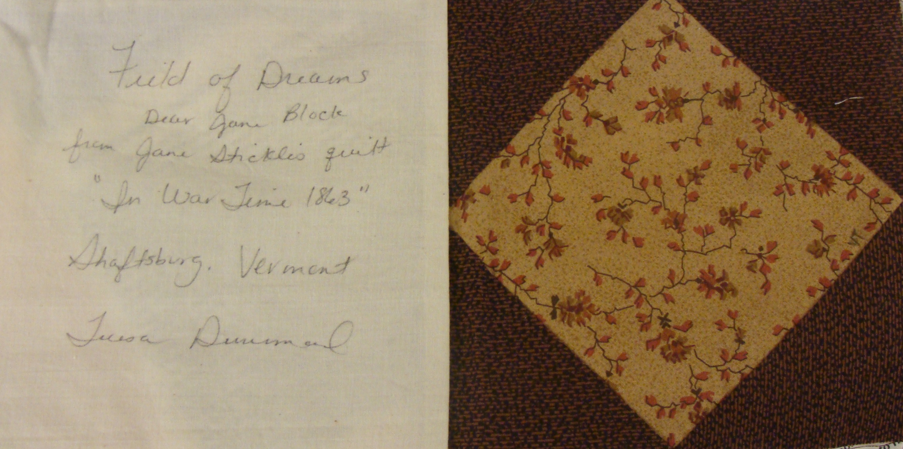 Field of Dreams from Jane Stickles "In War Time 1863" Quilt Vermont |