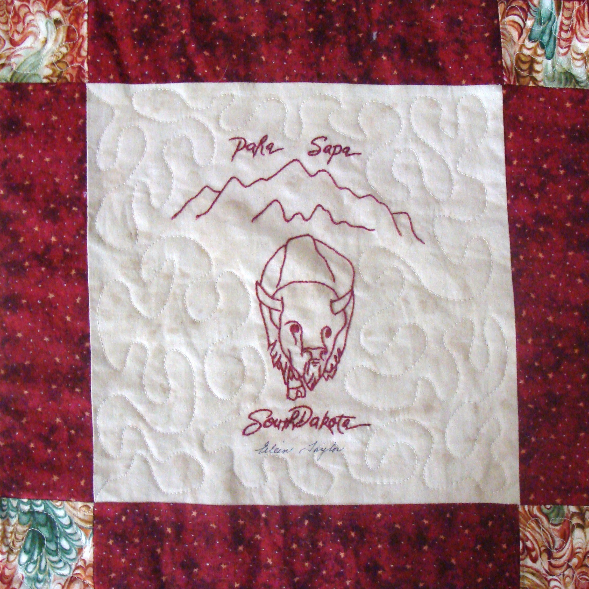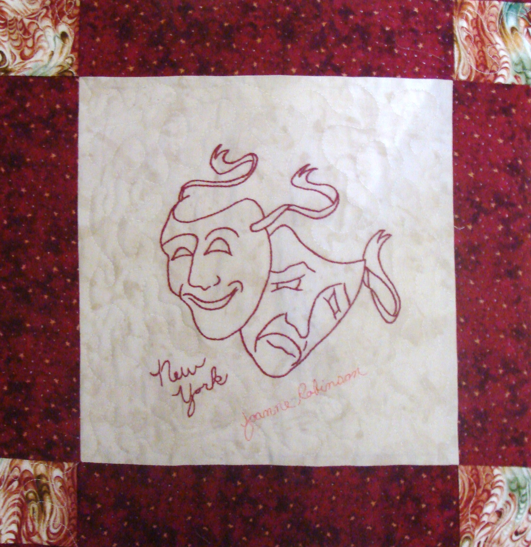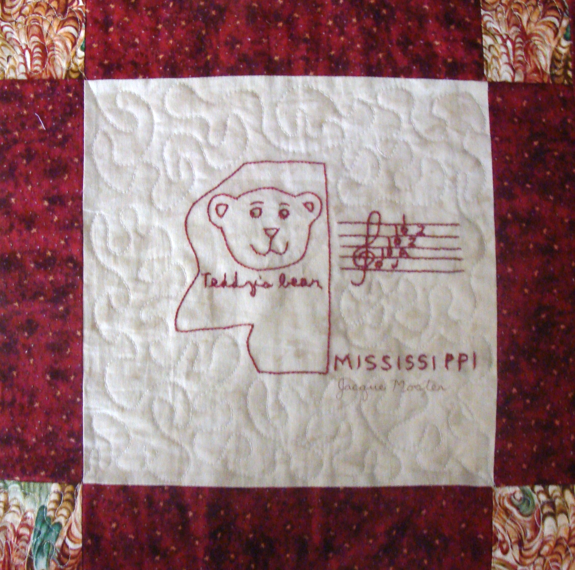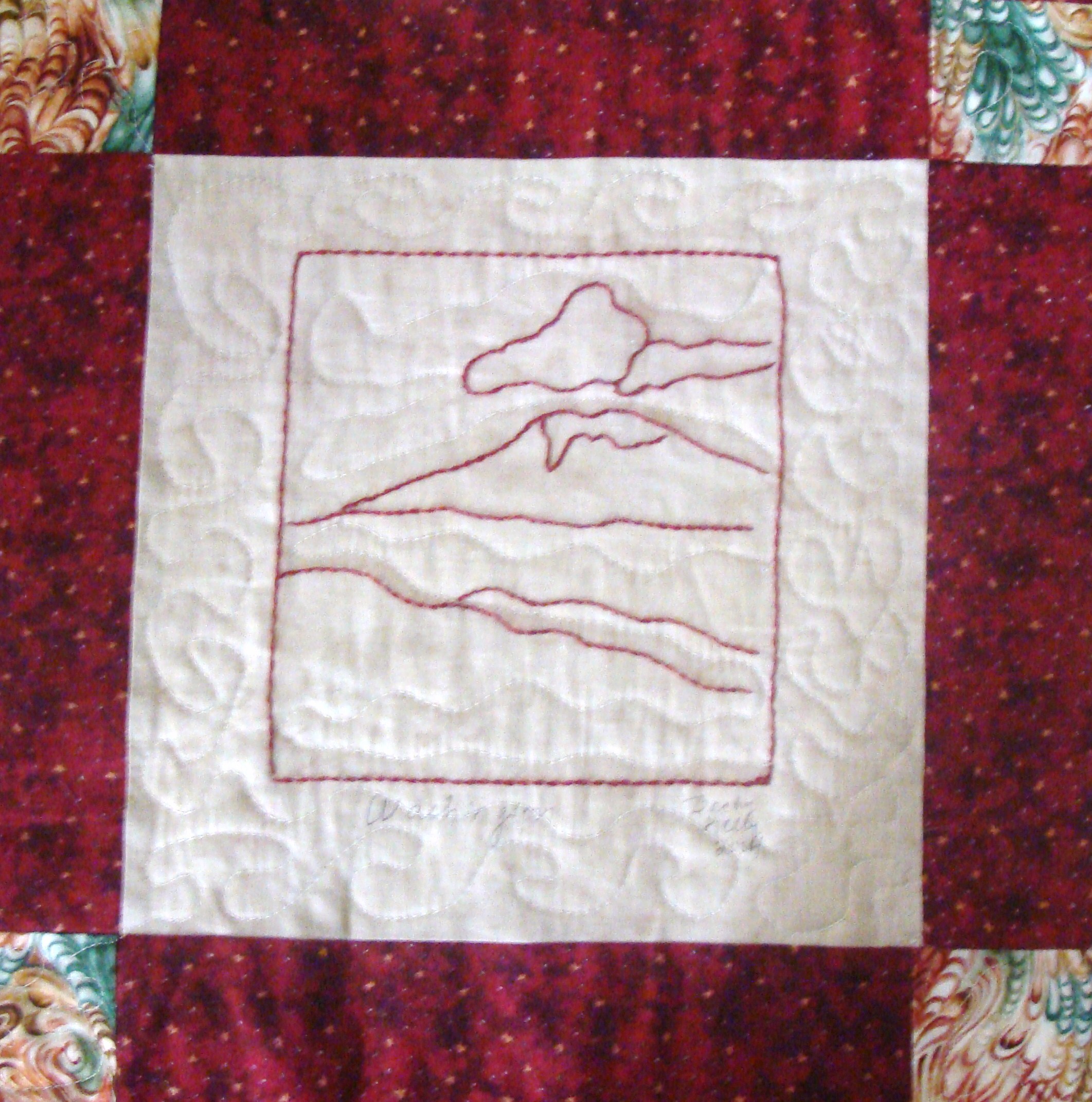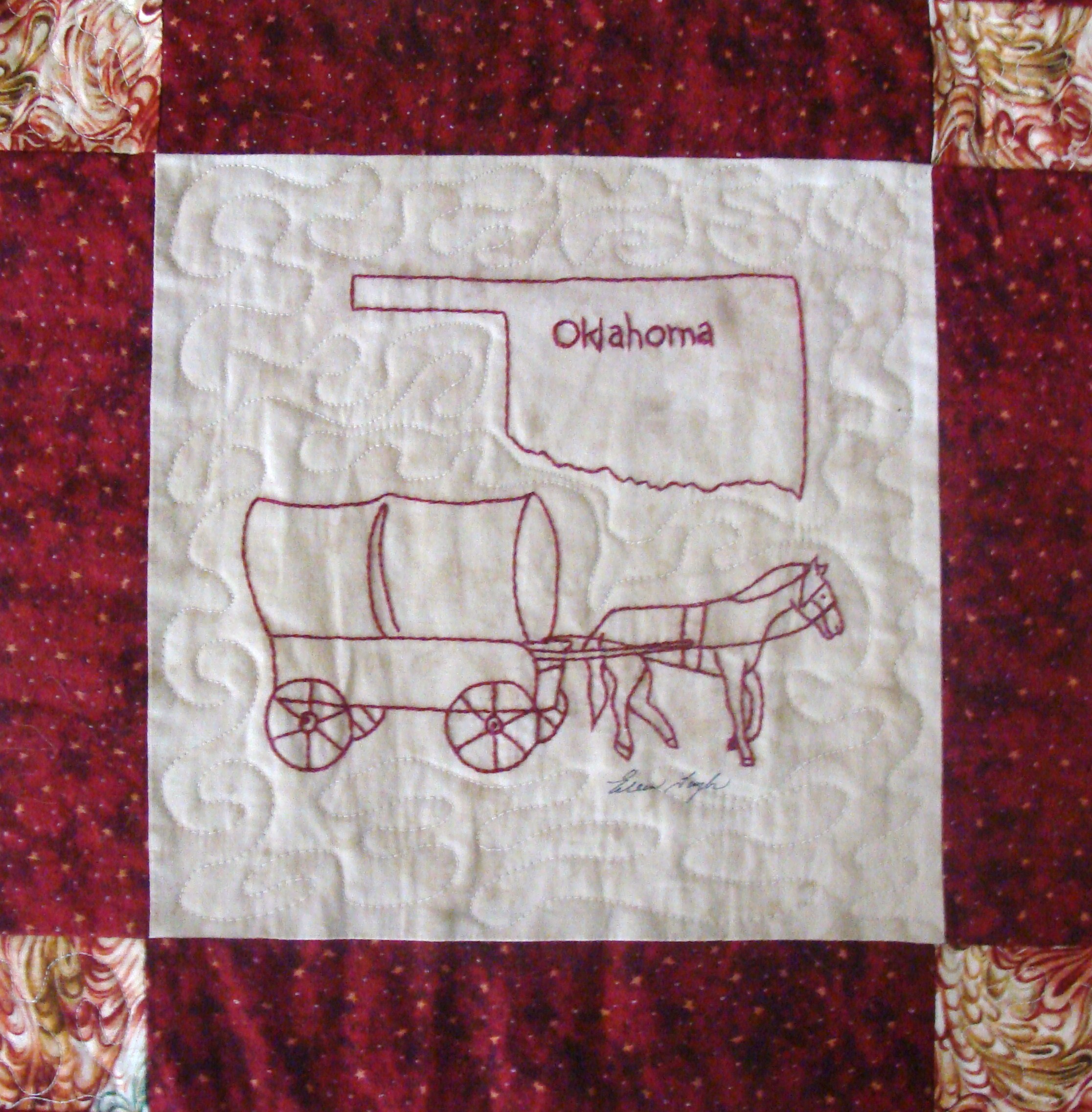 | Redwork 50 State Quilt Blocks Our quilting groups swapped 9 inch 50 State Redwork quilt blocks. Our quilt blocks are unique and were designed by the quilters to represent their states. The original designs are protected by copyright. Please do not copy or use them other than for inspiration. Relax, sit back, scan down and enjoy our quilters creativity and appreciation of the history behind each state quilt block. Hostess Teresa Drummond Completed 2004 Click the quilt blocks for larger image and name link for more State quilt blocks and State Info |