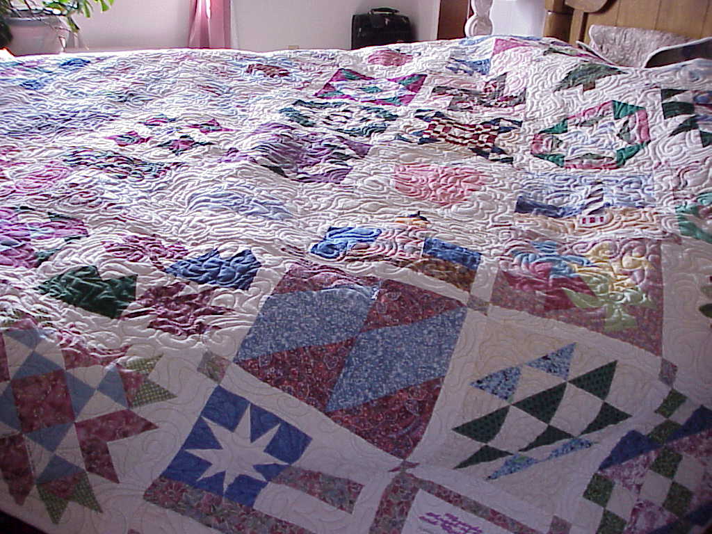 | JMarie's quilt made from NF 6 blocks for her friend Wanda |