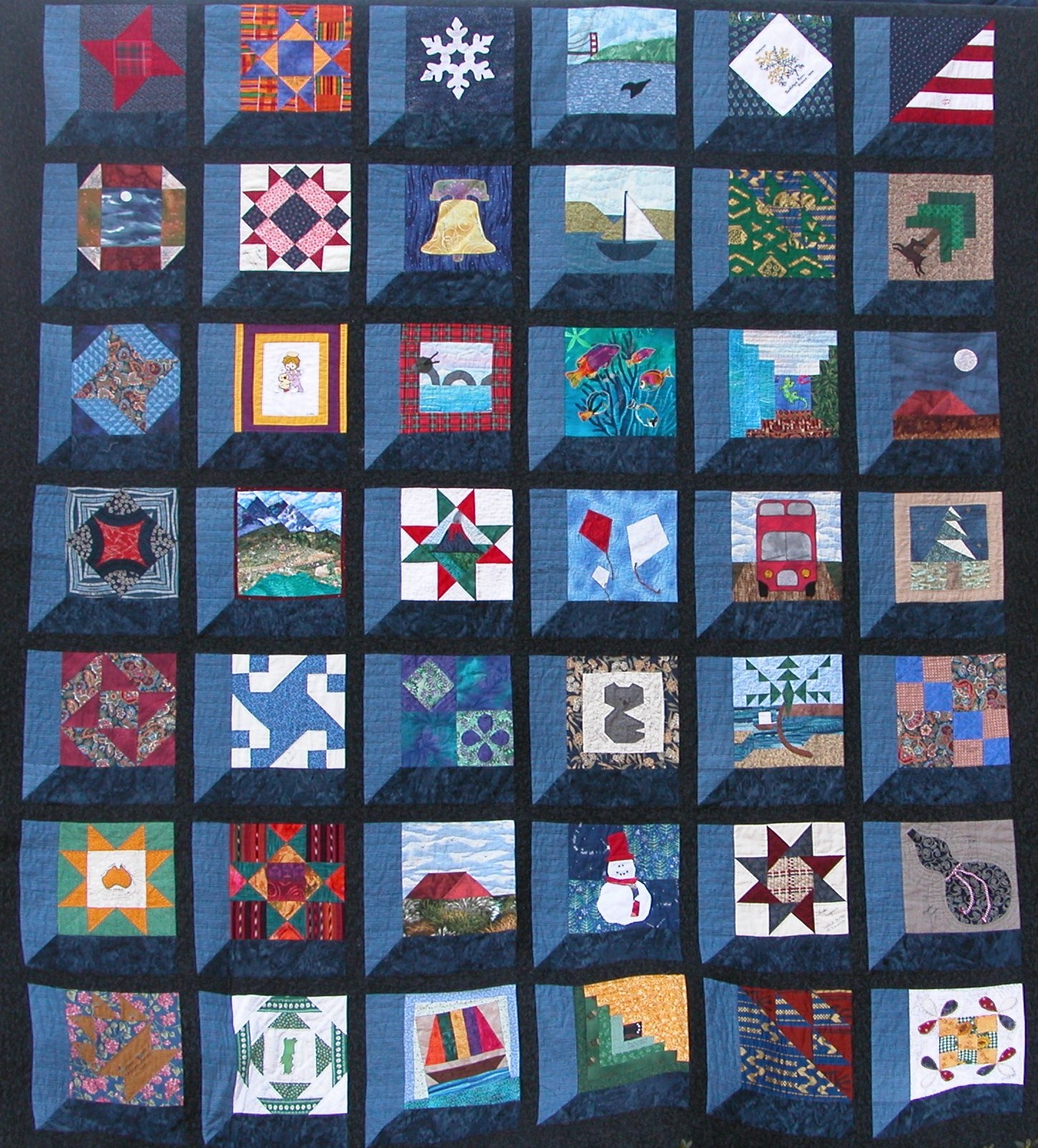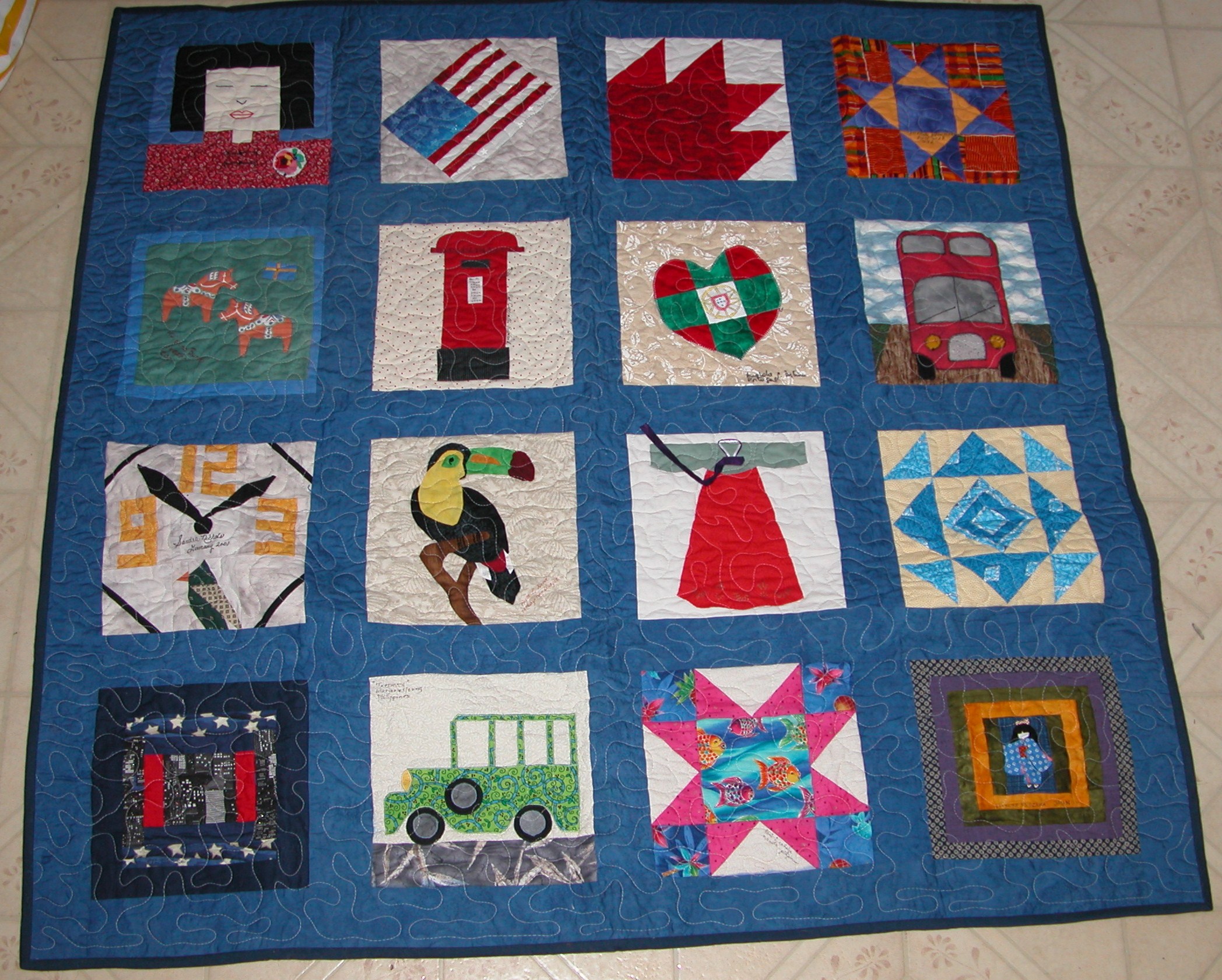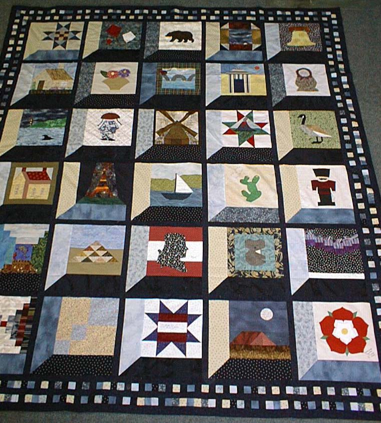 | Twenty Plenty Quilt groups are quilters from around the world who swapped quilt blocks under the same guidelines as the Nifty Fifty Quilt Block swaps. We were exchanging 20 international quilt blocks instead of 50 like in the Nifty Fifty swaps. These quilt blocks ranged from traditional quilt blocks to very unique quilt blocks. Twenty Plenty International Quilt Blocks from over 50 Countries Our Twenty Plenty swaps also made quilts for charity to benefit Breast Cancer Awareness. Teresa Drummond was hostess to Twenty Plenty I. Brenda Neily was hostess to Twenty Plenty Plus II and III and the co-hostess was Teresa Drummond. Teresa eventually took over the swaps because Brenda's breast cancer returned. Suzanne Pratt was hostess to our fourth swap whose theme was Sunbonnet Sue. |