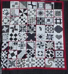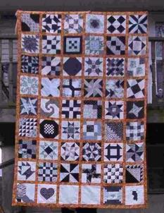 | Traditional 50 State Quilts Our quilting group swapped 12 inch 50 State Quilt Blocks in Black and White on White Color Theme Hostesses Vickie Ritthaler Completed January 2003 Click on quilts for a larger view |